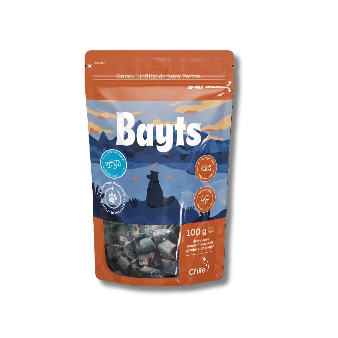 Regalonea a tus mascotas con el sabor y la nutrición pura del Snack Liofilizado BAYTS® Bocaditos. Elaborados con 100% trucha natural de origen del Sur de Chile, estos pequeños trozos son el premio ideal para perros y gatos de todas las edades y tamaños, ¡especialmente diseñados para un consumo fácil y rápido!